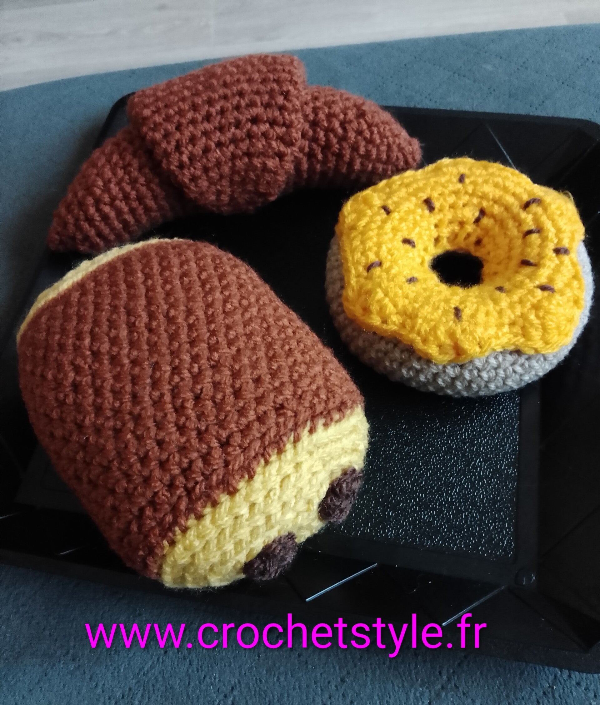 Lot de dînette crochet comprenant un croissant, un pain au chocolat, un donuts 🍩.